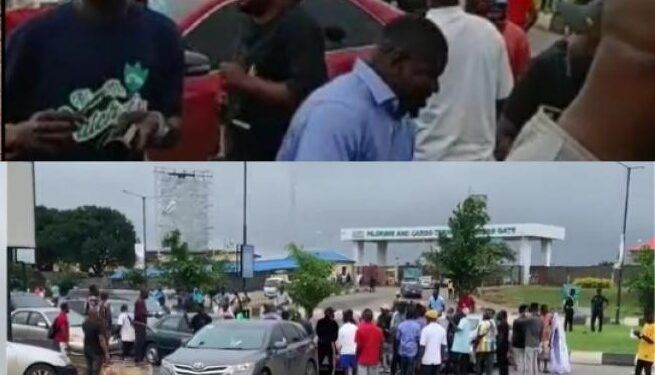 The students who were blocked by security operatives from gaining access to the airport took over the road, preventing traffic flow both inward and outward from the facility.