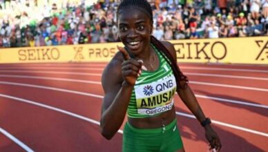 Minister for Youth and Sports Development, Hon. Sunday Dare on Friday received Oluwatobiloba Amusan for the first time after she brought glory to
